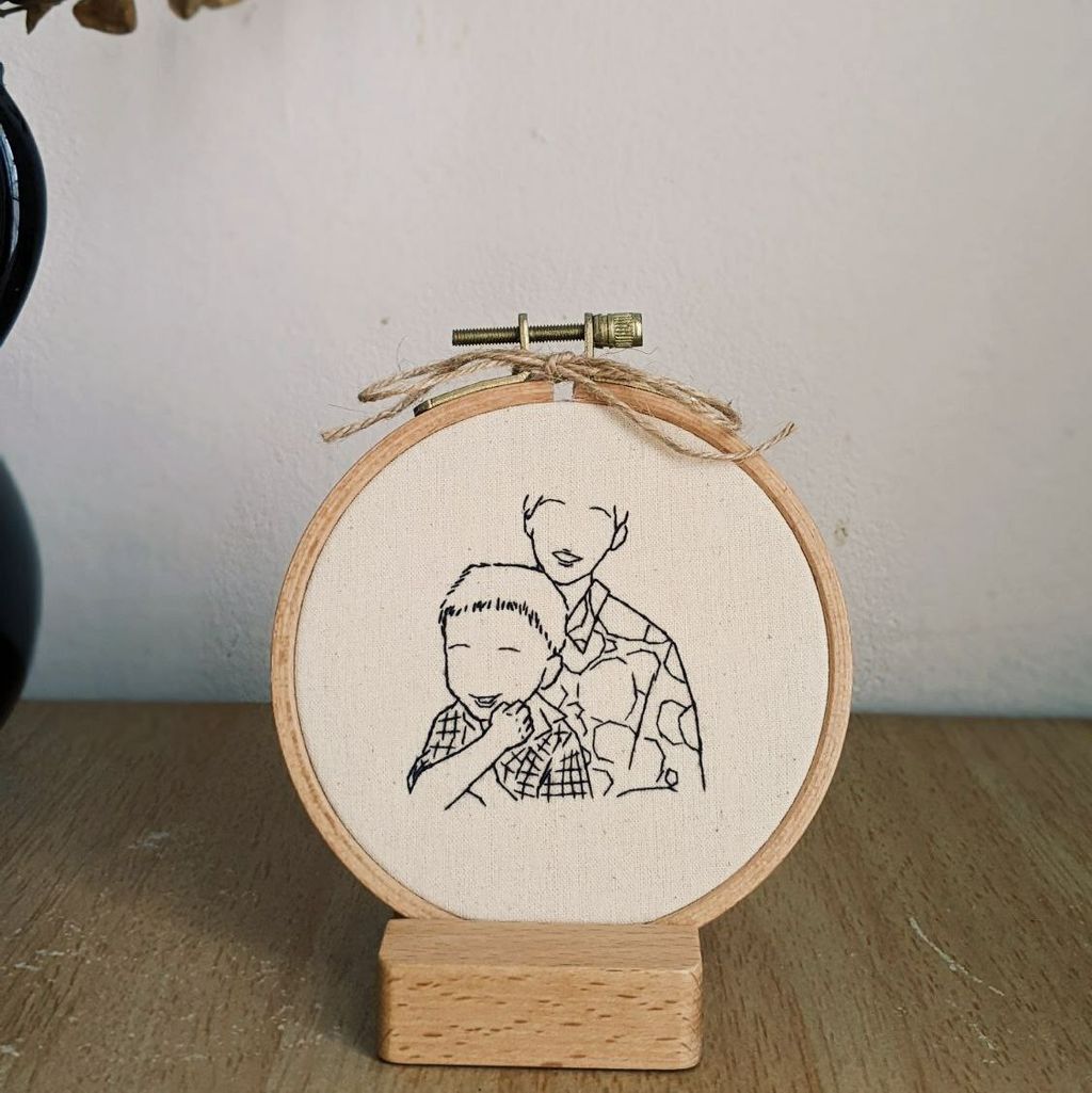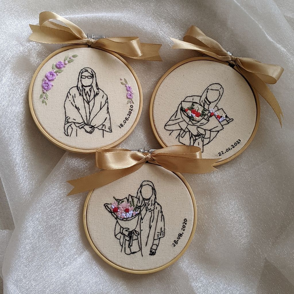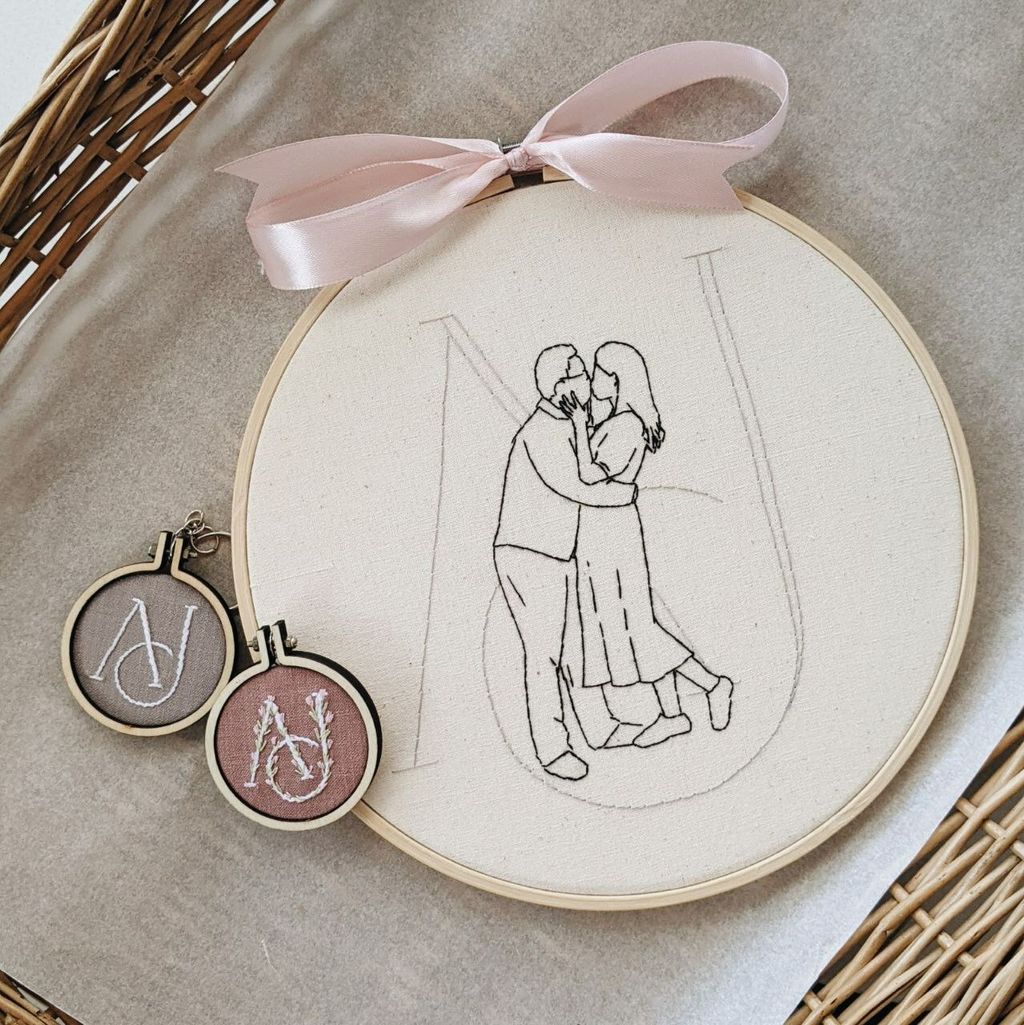 Can you add some colours? Yes! Black thread will be used for the general embroidery as a whole. Colours will usually be added to highlight specific parts, for example silver/gold threads for the rings, coloured floral bouquet etc.